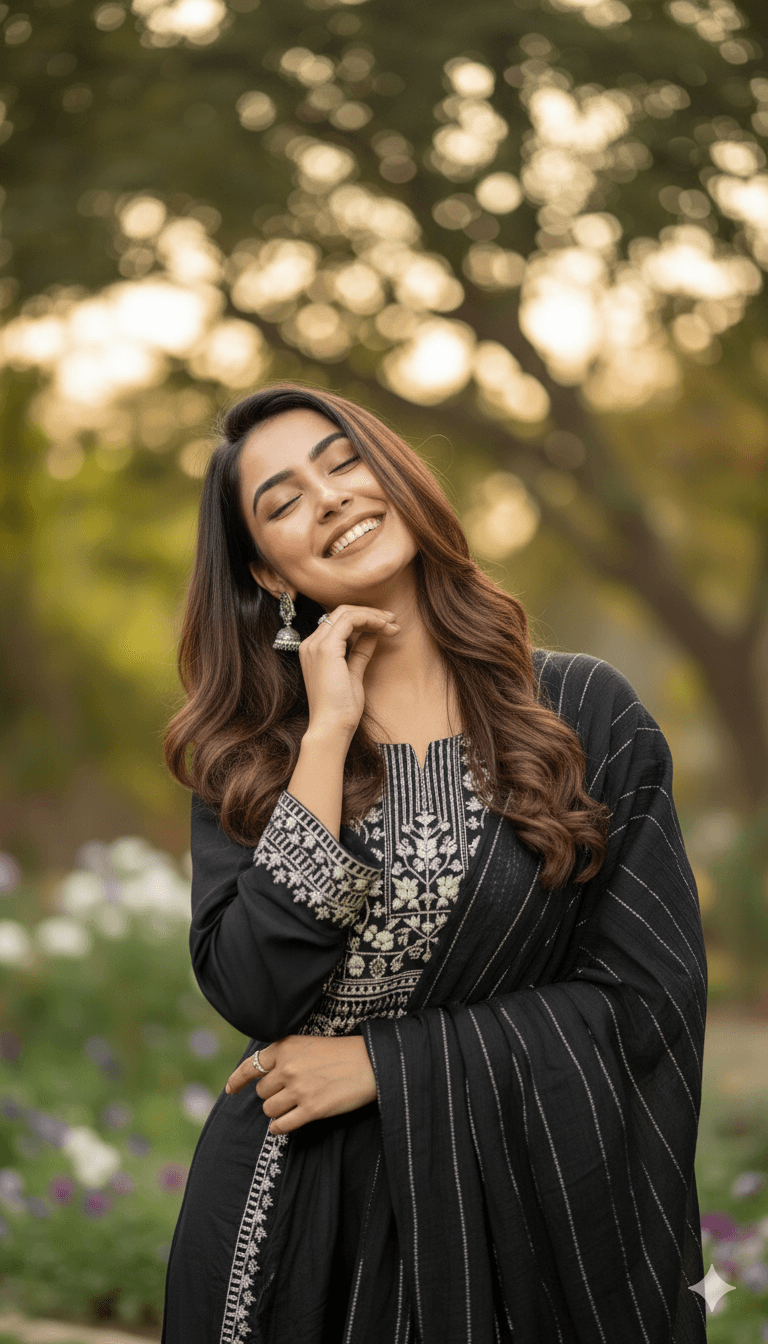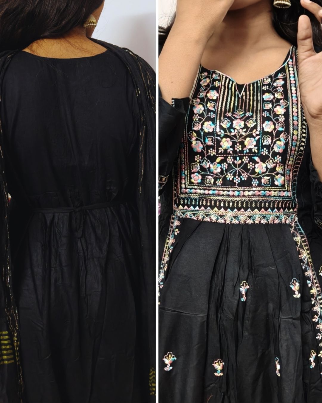 Floral Embroidered Black Kurt Set | Naira Cut Flare | Festive Ethnic Wear